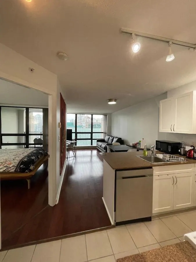Vancouver Downtown Central 1 Bedroom Condo apartment is situated in the centre of Vancouver, near the department store "Nordstrom Pacific Centre". The venue consists of 1 bedroom, 1 bathroom, and also a fully equipped kitchen.